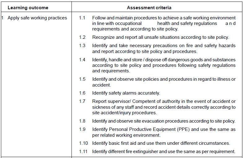Reading material for Lesson 3.2 Job roles learning outcomes and assessment criteria