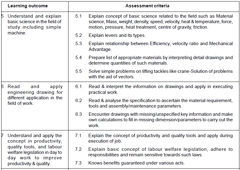 4.2. Electrician trade - Generic learning outcome with assessment criteria