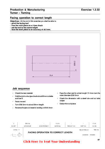 • Check the raw material. • Face the other end to a total length 75.4mm turn the