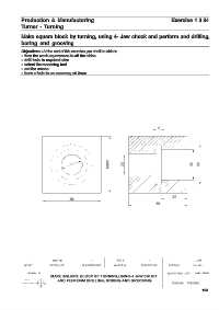 Make square block by turning, using 4- Jaw chuck and perform and drilling,