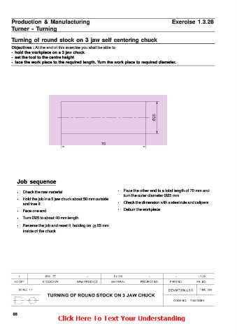 • Hold the job in a 3 jaw chuck about 50 mm outside